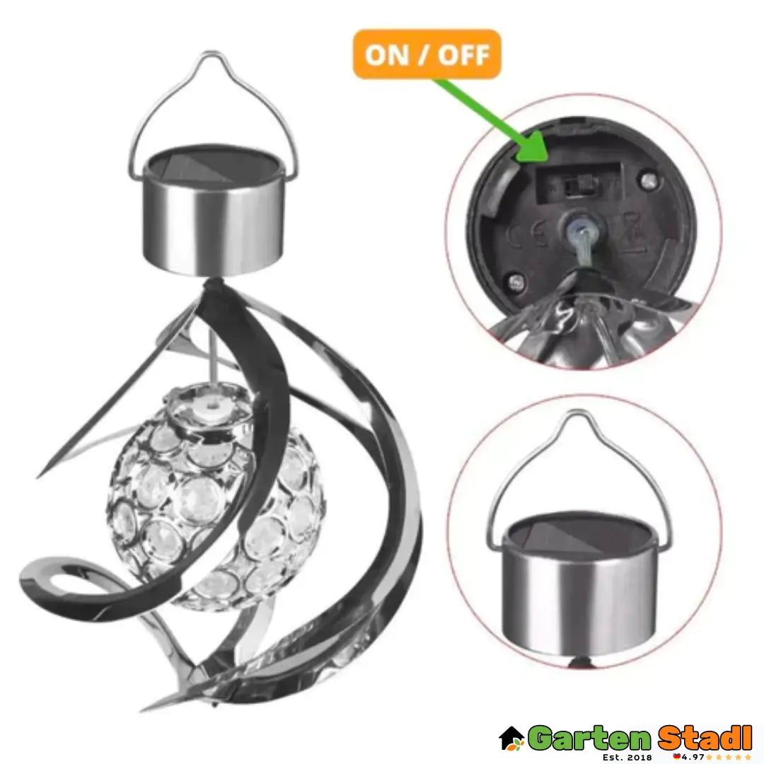 Unsere handgemachtes farbwechselndes Solarwindspiel wird mit der Kraft der Sonne am Tag via integrierten Solarzellen aufgeladen. Die einzigartigen Diamantdesign wechselt sanft zwischen 5 verschiedenen Farben.